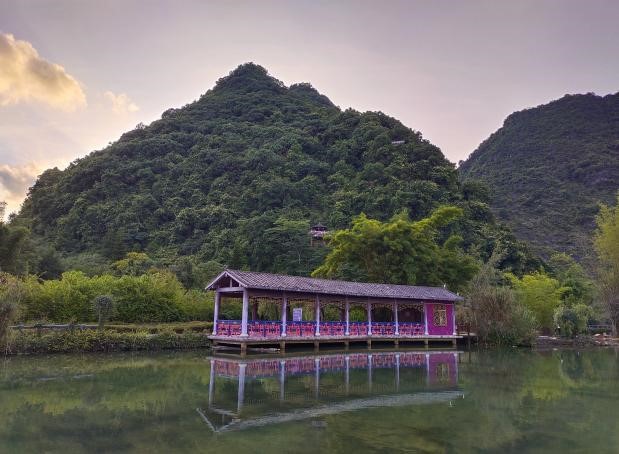7月16日,实践团成员在当地市府办林副主任等六位领导的带领下前往旧州古镇与鹅泉景区调研。在景区内,实践团成员发现在疫情影响下景区内的商户多数已经将铺面转租,留在景区内的商户表示疫情对于他们的经营冲击影响很大,当地著名绣球手工艺人也已不在景区,因此此次调研未能得见,略有遗憾。实践团还参观了景区内的壮族生态博物馆,见识到了壮族传统织布机、成品布匹等,实践团成员都被特色工艺所惊艳。