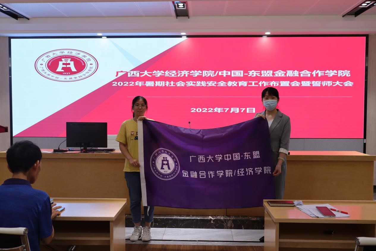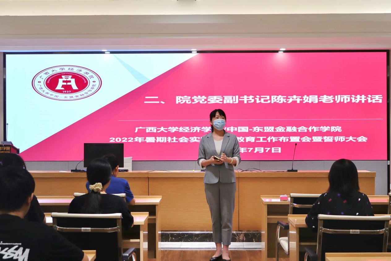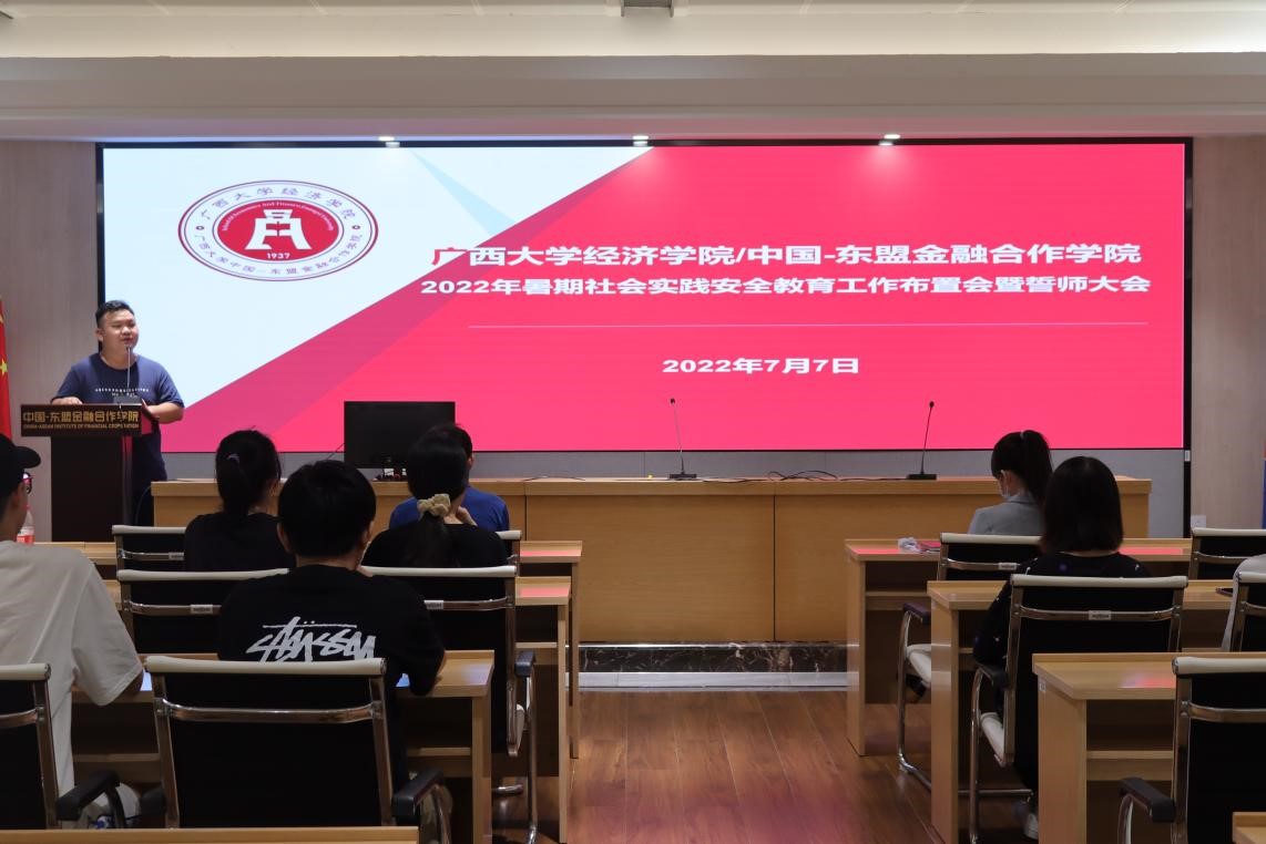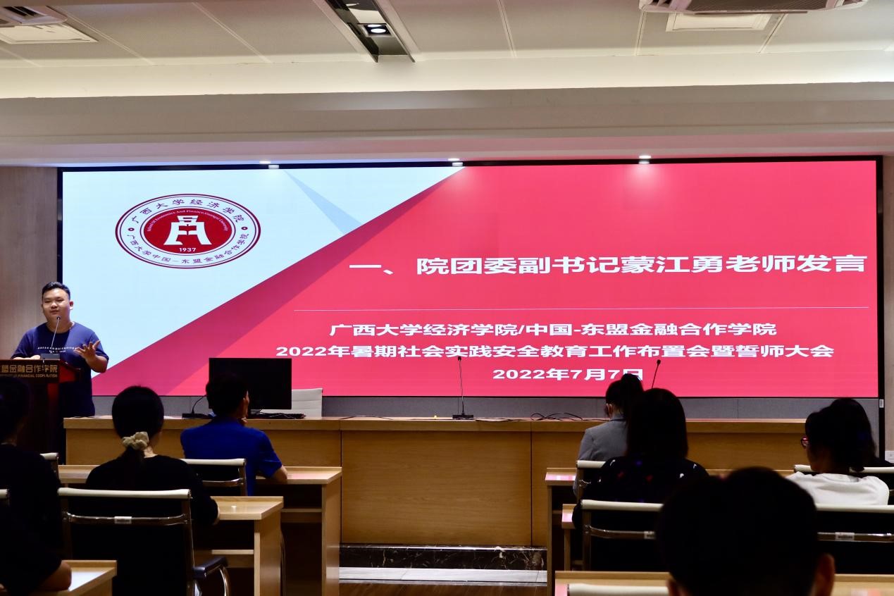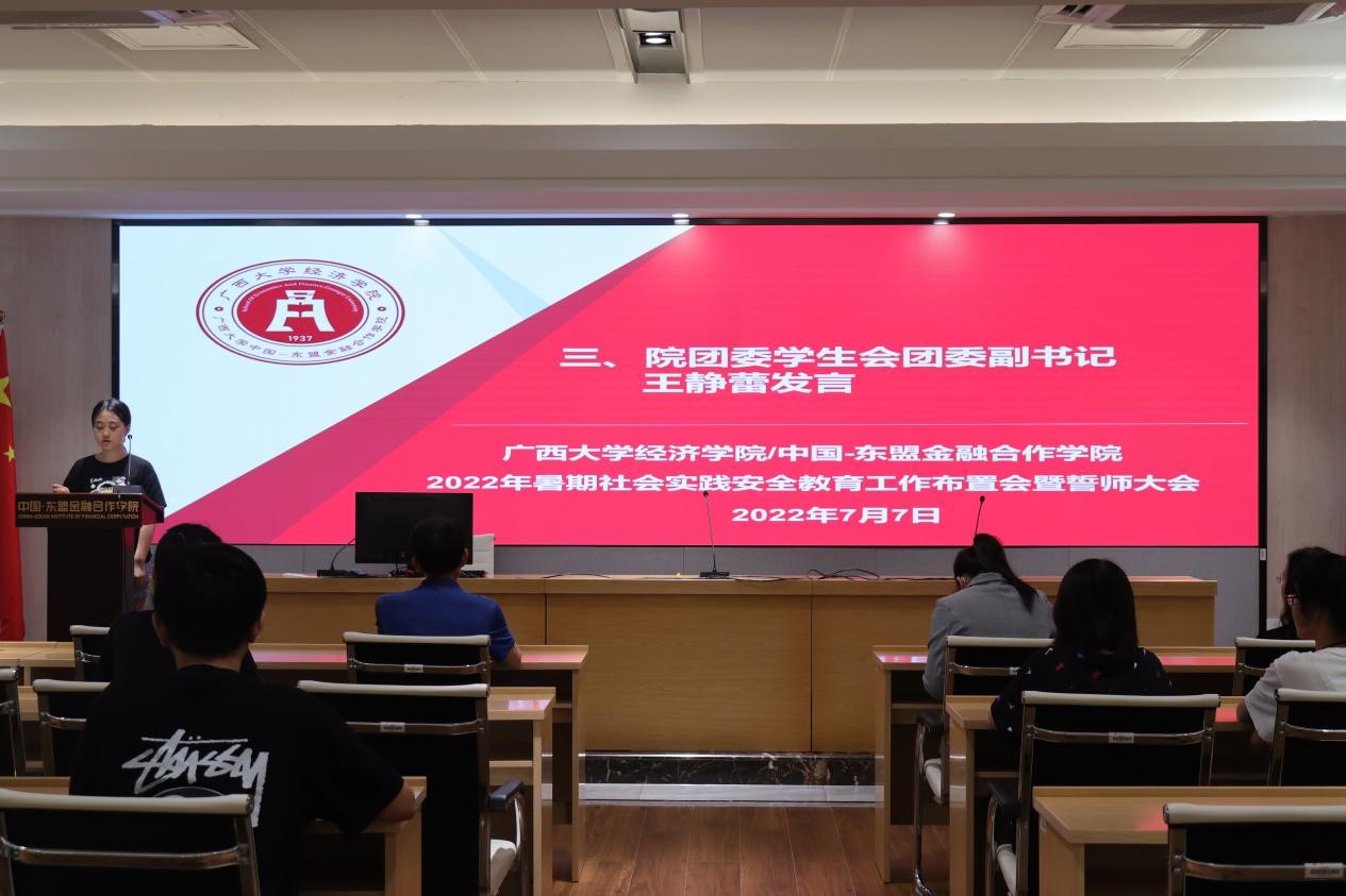 101会议室内召开2022年暑假社会实践安全教育工作布置会暨誓师大会。院党委副书记陈卉娟、院团委副书记蒙江勇、学工组辅导员蒙昀、曾宪友、覃晓阳、院团委副书记(本科生)王静蕾及大陆博彩平台