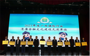 会上,广西银行业协会常务专职副会长滕仲斌宣读2023年度广西银行业清廉金融文化建设先进单位和勤廉榜样表彰决定,广西保险行业协会常务副会长兼秘书长徐海宣读2023年度广西保险业清廉金融文化建设先进单位和勤廉榜样表彰决定。国家金融监督管理总局广西监管局党委书记、局长任庆华,国家金融监督管理总局广西监管局党委委员、纪委书记杨波与滕仲斌、徐海一起为广西银行业保险业清廉金融文化建设先进单位、广西银行业保险业勤廉榜样颁奖。