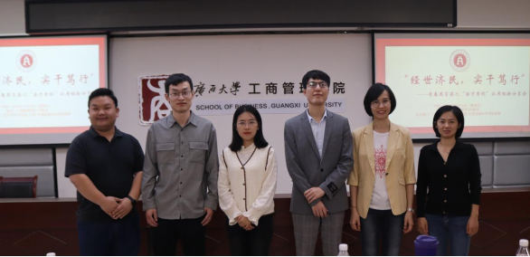 124教室举办“金才有约”主题沙龙活动,本次活动主题为“经世济民,实干笃行” 公考经验分享会。院团委书记王海希,团委副书记蒙江勇,学工组专职辅导员何湘桂出席本次活动。