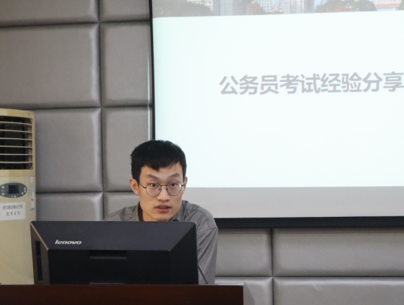 首先,李沣霖校友就公务员选岗、面试备考经验进行展开。他鼓励大家在选岗时,要结合职业生涯规划和自身能力去选择岗位;备考中,要有针对性地反复练习,以自我的清晰定位为主,保持战略定力;面试时,要能够平稳、流畅的交流。