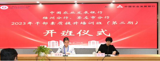 本次中国农业发展银行梧州分行、崇左市分行2023年干部素质提升培训班(第二期)的成功举办,期望学员们能够理论结合实践,在梧州、崇左地区农村金融领域发挥积极作用,为全国减贫与发展贡献力量。