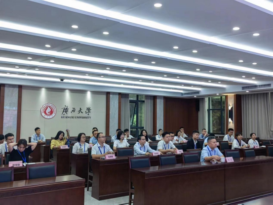 院长助理覃诚博士、阳光一家家庭综合保险销售服务有限公司广西分公司总经理张喆,出席开班仪式并分别致辞。共30名学员参加本次培训。