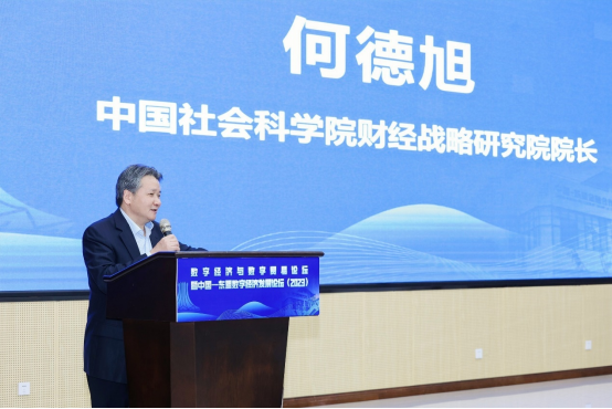 财经战略研究院院长何德旭在致辞中介绍了本次论坛的筹备情况。他指出,数字经济和数字贸易发展非常之快、影响非常之大,还要加深对数字经济和数字贸易发展的基础条件、运行规律、外在影响的认识。期待与在座的各位专家一起密切跟踪数字经济和数字贸易领域的学术前沿,加强学术交流,促进学科发展,为构建中国特色哲学社会科学作出新的更大的贡献。