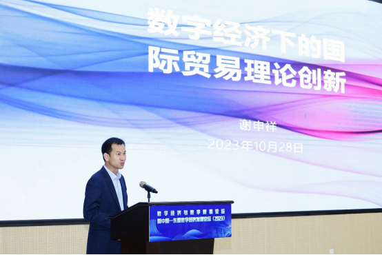山东财经大学副校长谢申祥发表题为《数字经济下的贸易理论创新》的主题演讲。他指出数字经济实际上是一种数字化的经济形态,体现了技术进步对经济活动带来的革命性影响。他认为数字经济下对国际贸易理论有些挑战:一是传统比较优势理论的再审视;二是范围经济更加凸显;三是市场结构产生了改变;四是距离和经济规模的影响力变化。