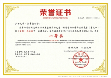 首次参加赛道四“国际经济分析与决策竞赛”的比赛便荣获了全国二等奖的好成绩。
