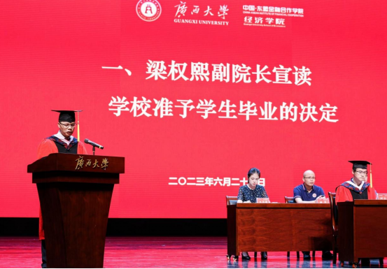 毕业典礼在雄壮激昂的国歌声中拉开序幕。典礼伊始,梁权熙副院长宣读学校准予学生毕业的决定,大陆博彩平台