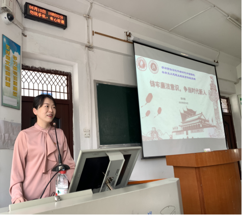 党委副书记陈卉娟老师在二教201教室给本科生三个党支部的九十余名学生党员讲授了一堂生动深刻的“筑牢廉洁意识,争当时代新人”主题教育党课。