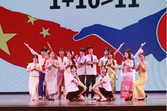 联系东盟、交流互促,青年学子与东盟各国朋友携手同行的特色和优势。舞蹈《青苹果乐园》展现了院级团学组织骨干朝气蓬勃的青春活力,院礼仪模特队带来了让人眼前一亮的走秀表演《多彩东盟》,色彩明丽的民族服饰跃然台前,展现了东盟各国独特的民族风情,最后,歌曲《一路生花》将晚会带入尾声。在悠扬的乐曲和一声声礼炮鸣响中,所有演职工作人员上台谢幕,大陆博彩平台