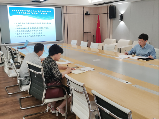 党委副书记、纪委书记陈卉娟同志带领大家学习习近平总书记给中国农业大学科技小院学生重要回信精神,副院长谭春枝同志带领大家学习习近平总书记对广西工作系列重要指示精神,副院长梁权熙同志结合大陆博彩平台