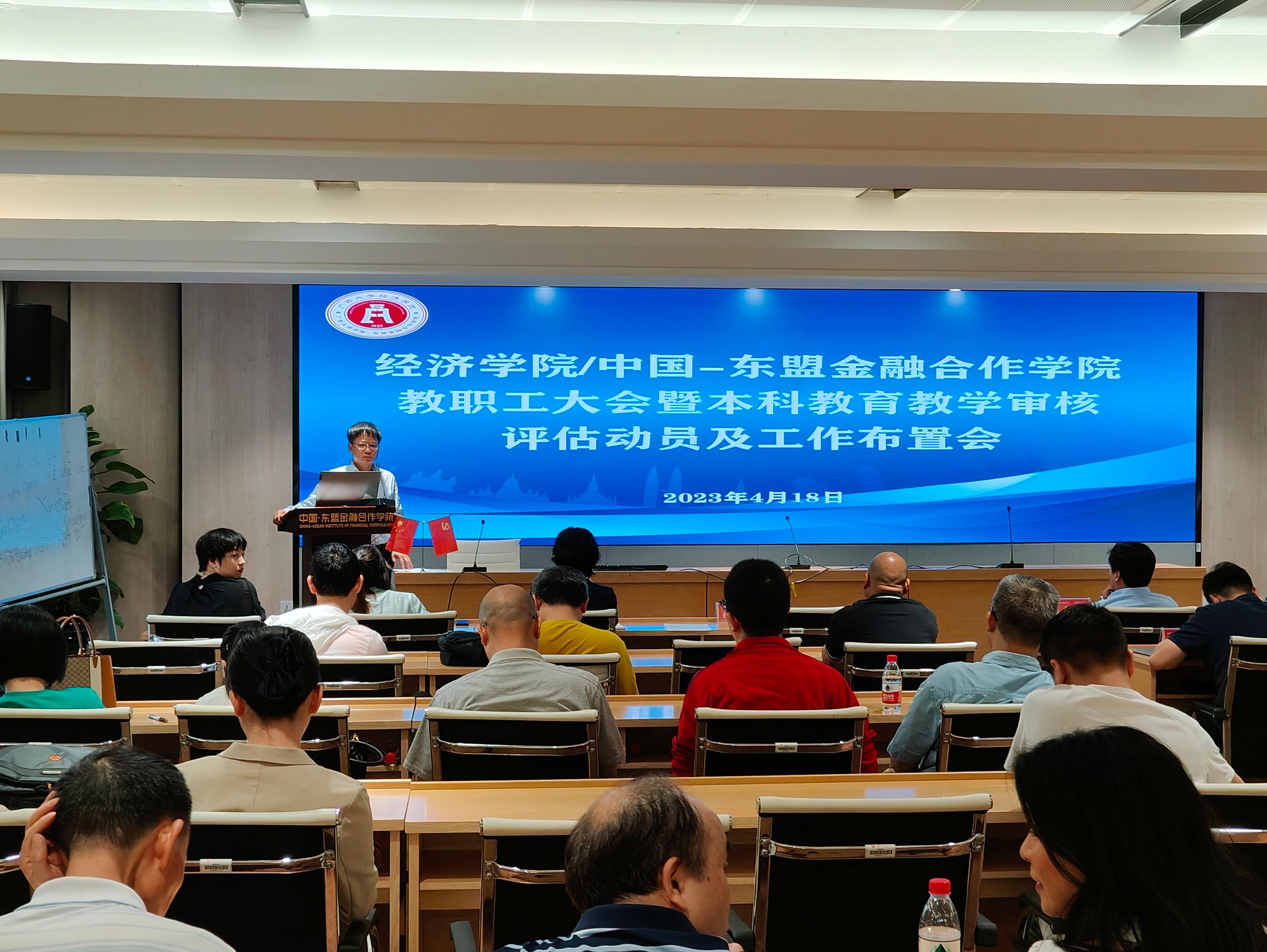 在101会议室召开教职工大会暨本科教育教学审核评估动员及工作布置会,全体教职工参加会议。
