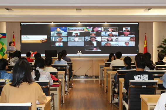 党委副书记/副院长郭宇路、国际交流专员樊凡教授、对外交流秘书李娟出席活动,中国-东盟金融经济创培班以及研究生代表线上线下共计350人参加讲座。本次活动还得到了区金融机构和企事业单位的大力支持,多家金融机构和国企管理人员在线听讲。