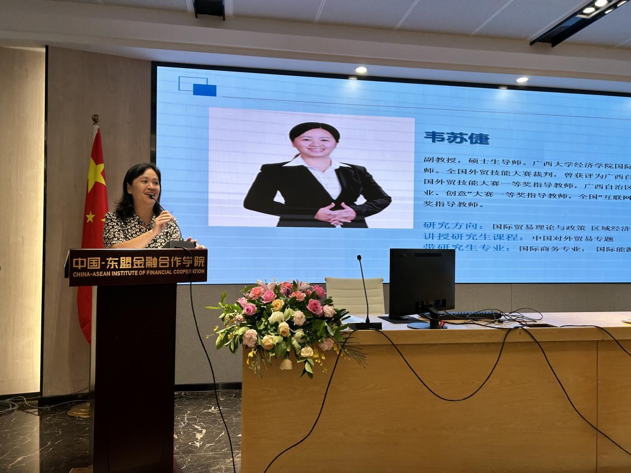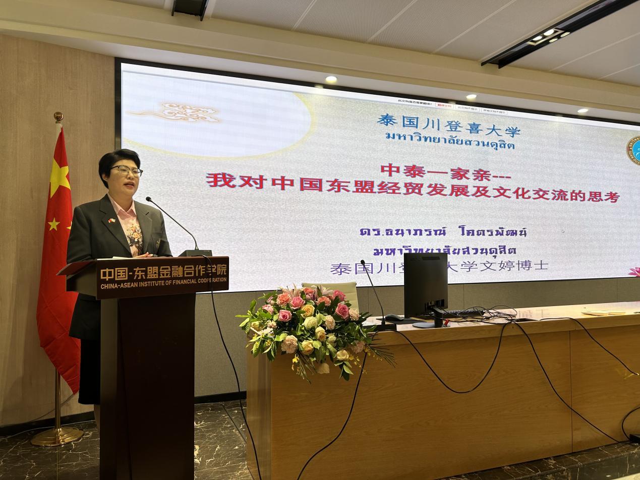 泰国川登喜大学文婷院长以《中泰一家亲》为题展开讲话,分享了自己对中国-东盟经贸发展以及中国-东盟金融合作发展前景的看法。
