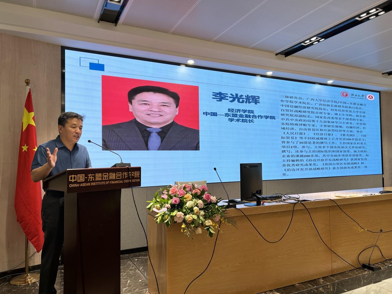 党委副书记、副院长郭宇路主持,学术院长李光辉教授,金融与财政系主任刘骞文博士,泰国川登喜大学国际(中国-东盟)商务专业教学指导委员会委员文婷博士,巴基斯坦博士后沙阳,副班主任韦苏倢副教授及金融经济创培班36位同学参加开班仪式。