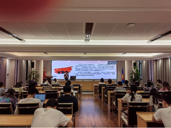 教工行政党支部、研究生2019级第一党支部和研究生2021级第二党支部的50余名党员上“对党忠诚,做合格党员”专题党课。
