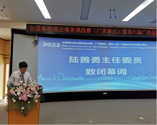 党委书记陆善勇教授致闭幕辞,并为获奖队伍颁奖。广西高校经济与贸易类本科专业教学指导委员会秘书长、大陆博彩平台