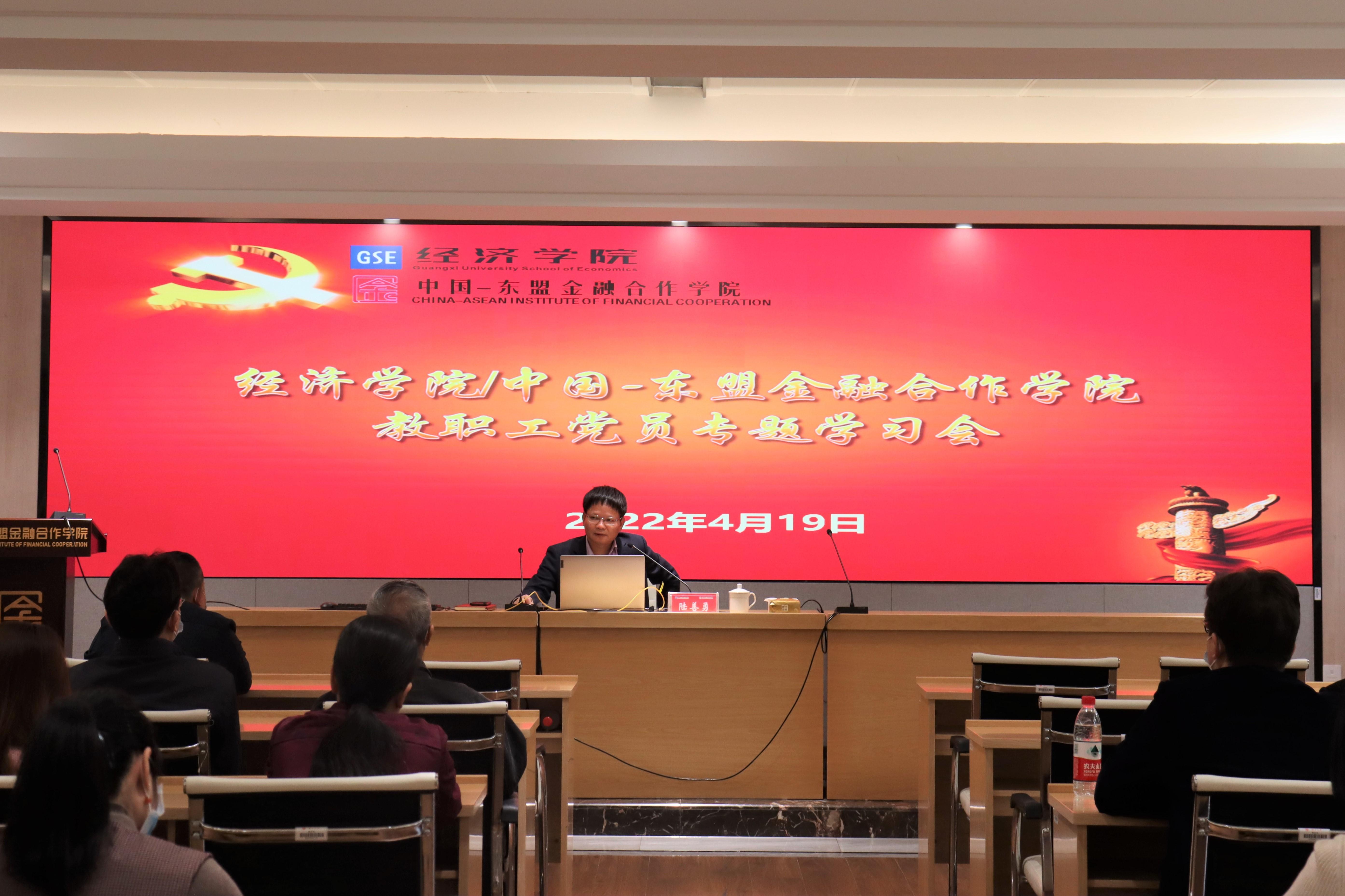 党委在101会议室召开全院教职工党员专题学习会,院党委书记陆善勇教授主持会议。