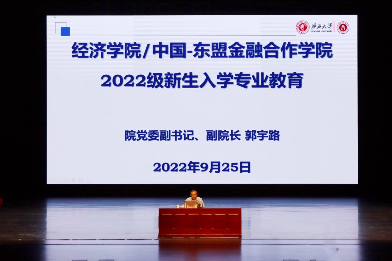 党委副书记、副院长郭宇路在汇学堂为2022级本科新生做学科专业和学籍管理教育讲座。