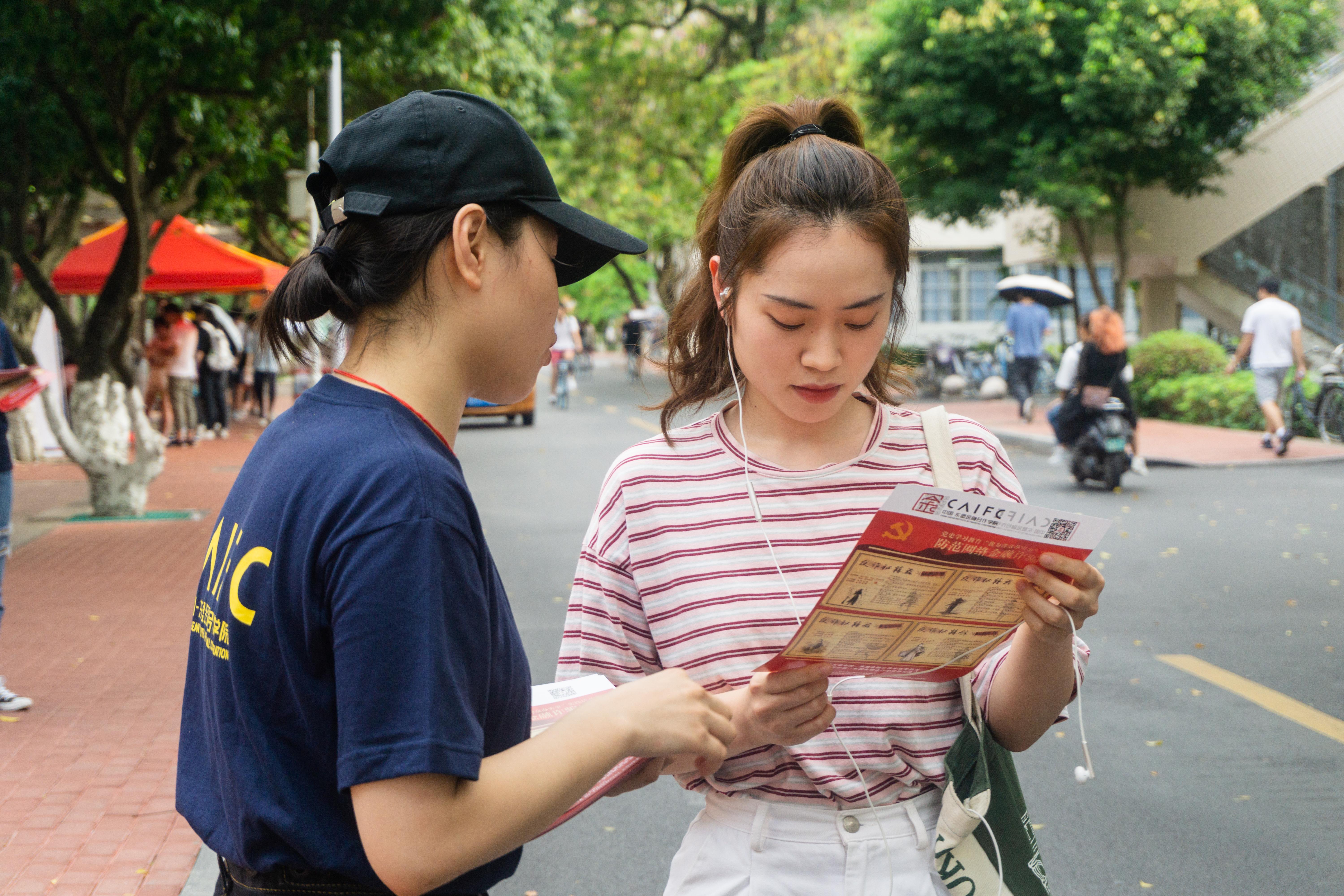 图3 学生党员派发海报宣传防诈骗知识
