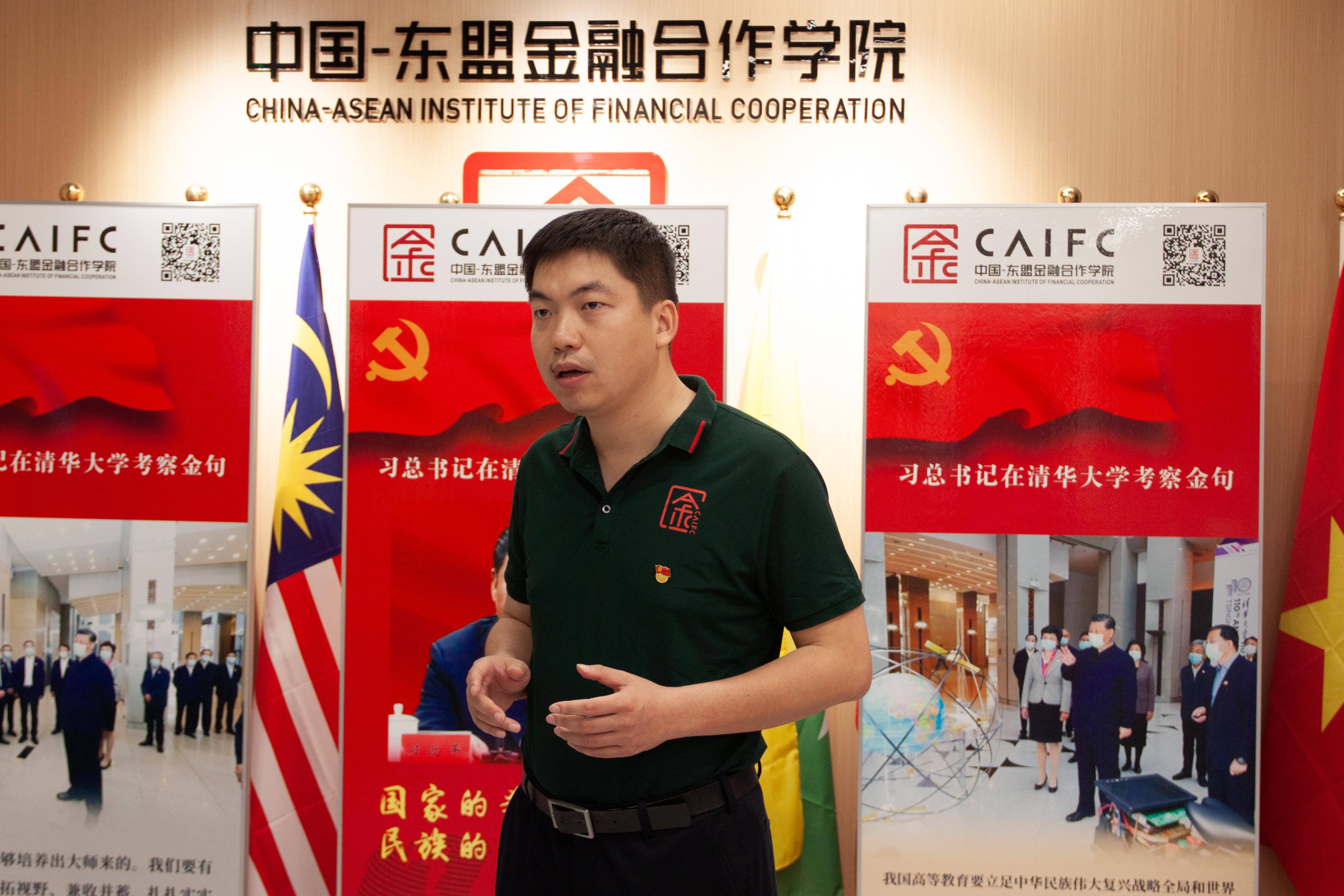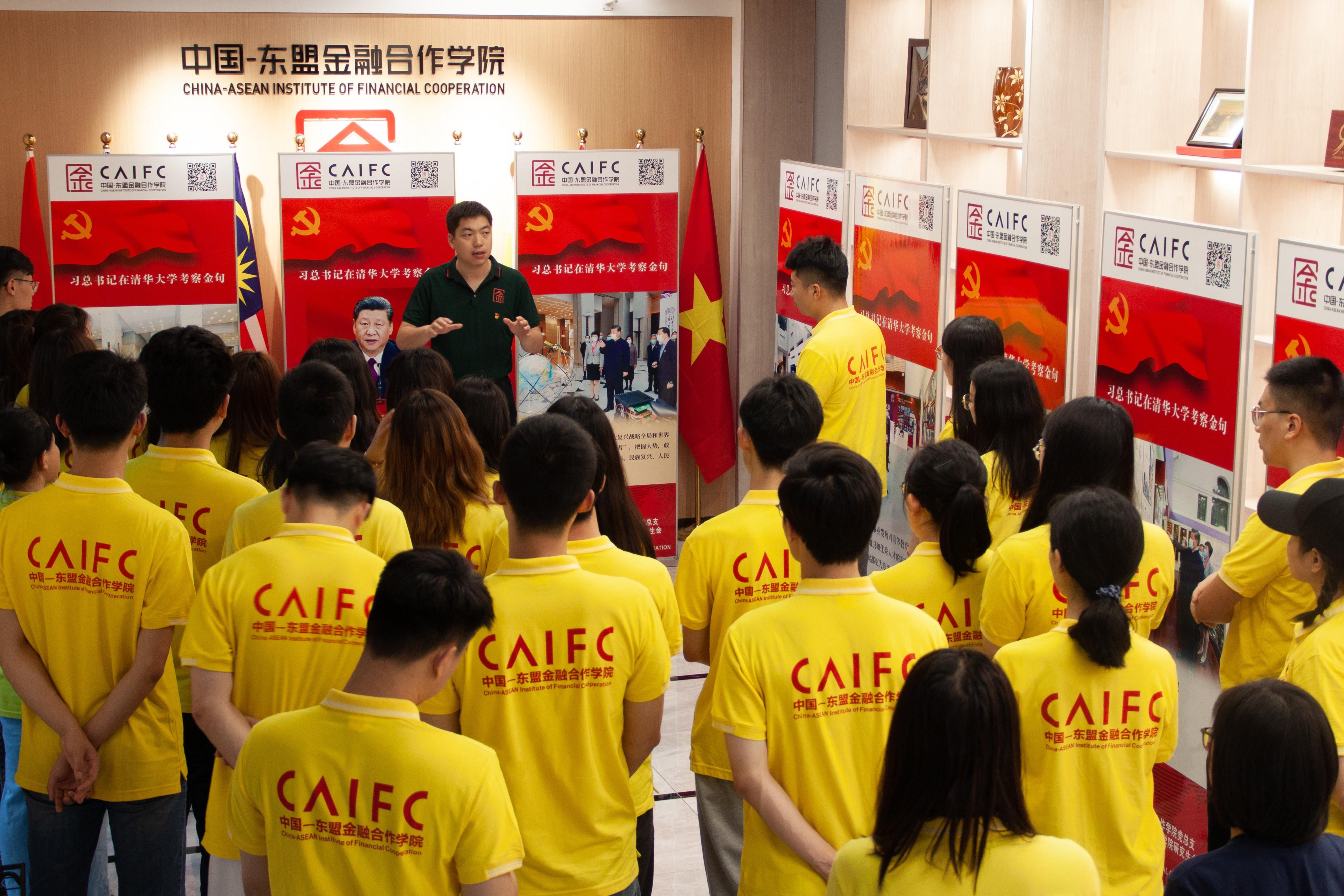一楼大厅共同参观习近平总书记在清华大学考察金句展板,中国—东盟金融合作大陆博彩平台