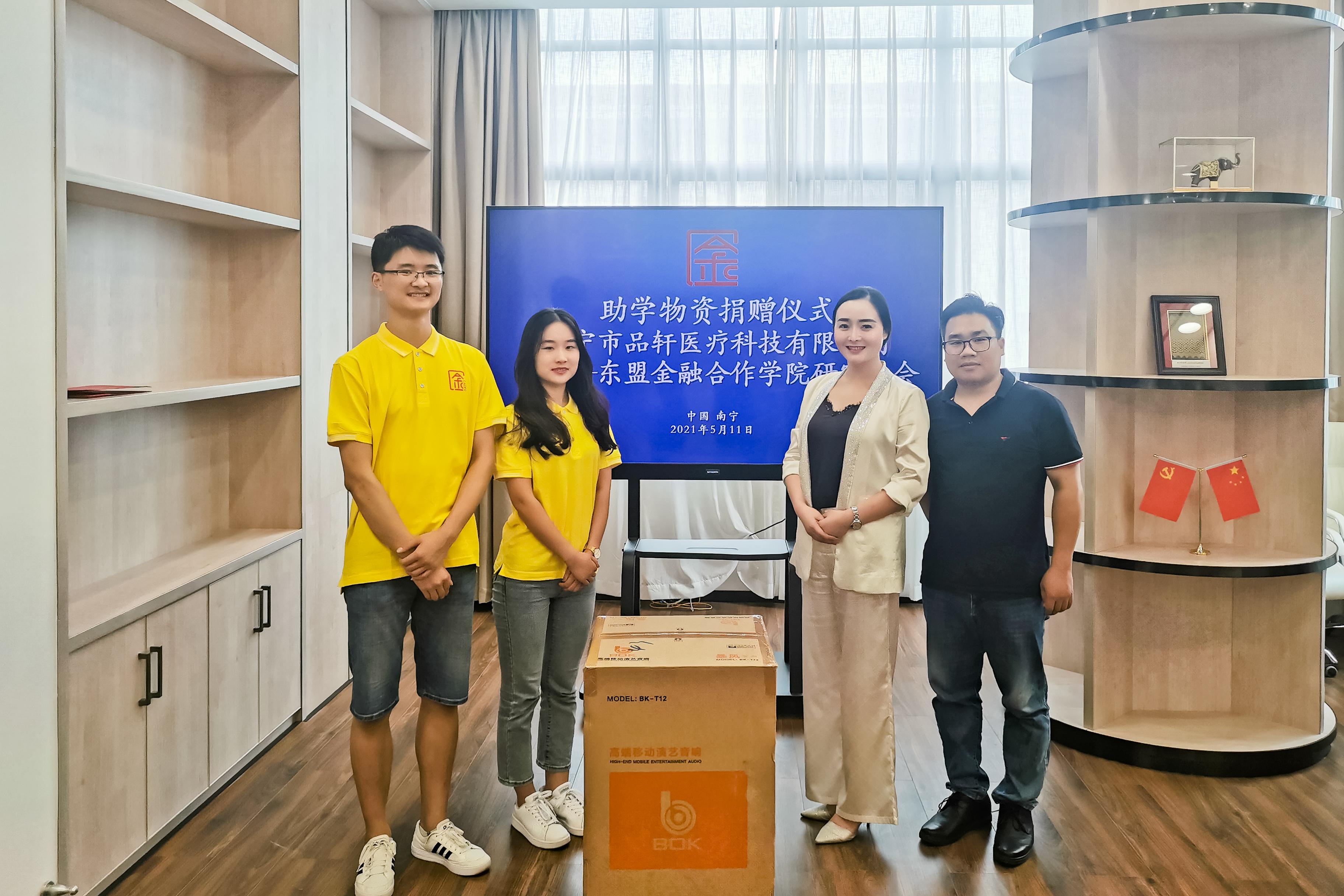 研究生会的大力支持表示衷心感谢。捐赠仪式后,郭书记与南宁品轩医疗科技有限公司负责人张丽媛、王万春座谈交流,双方就今后的东盟市场开拓与合作前景进行了深入沟通。