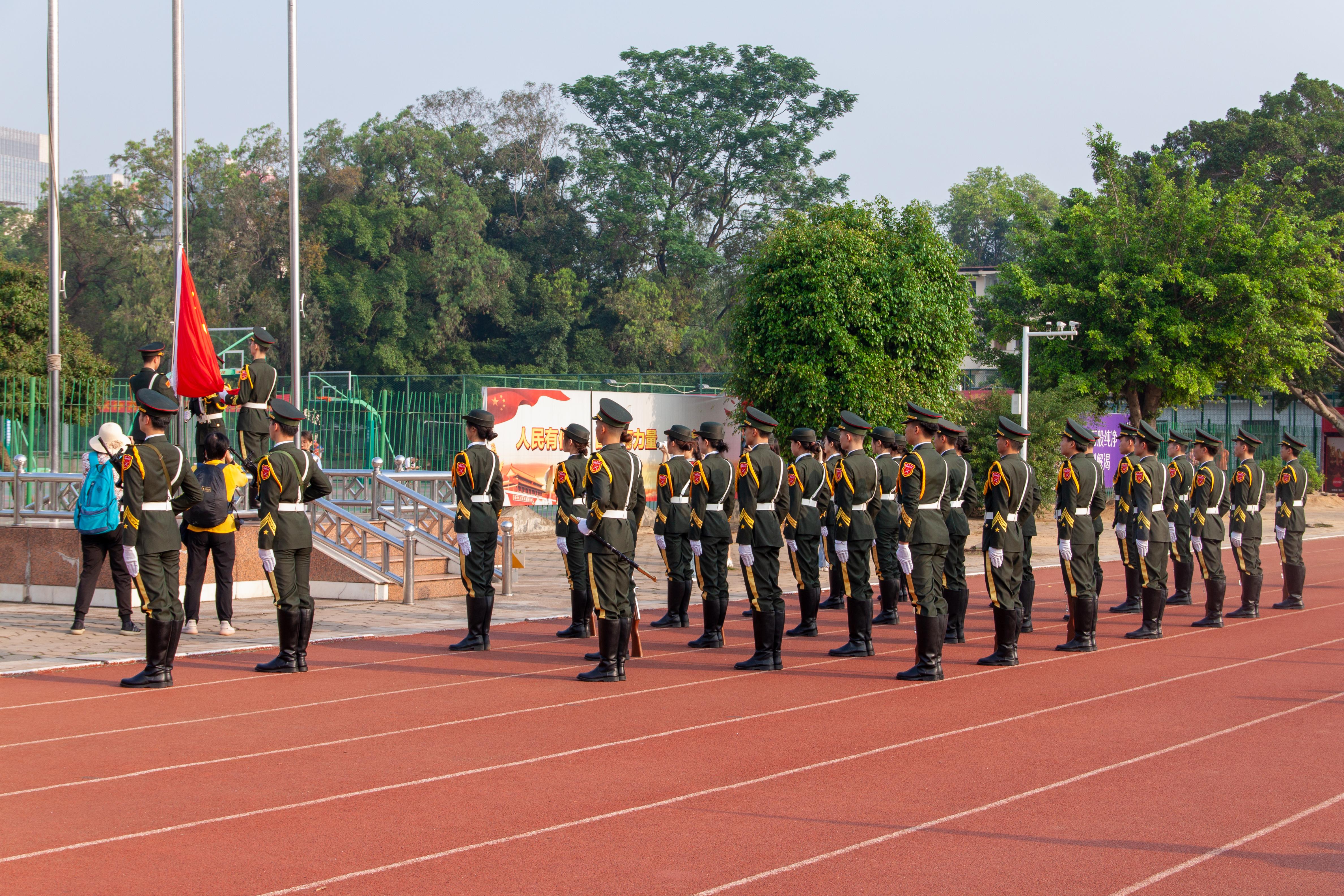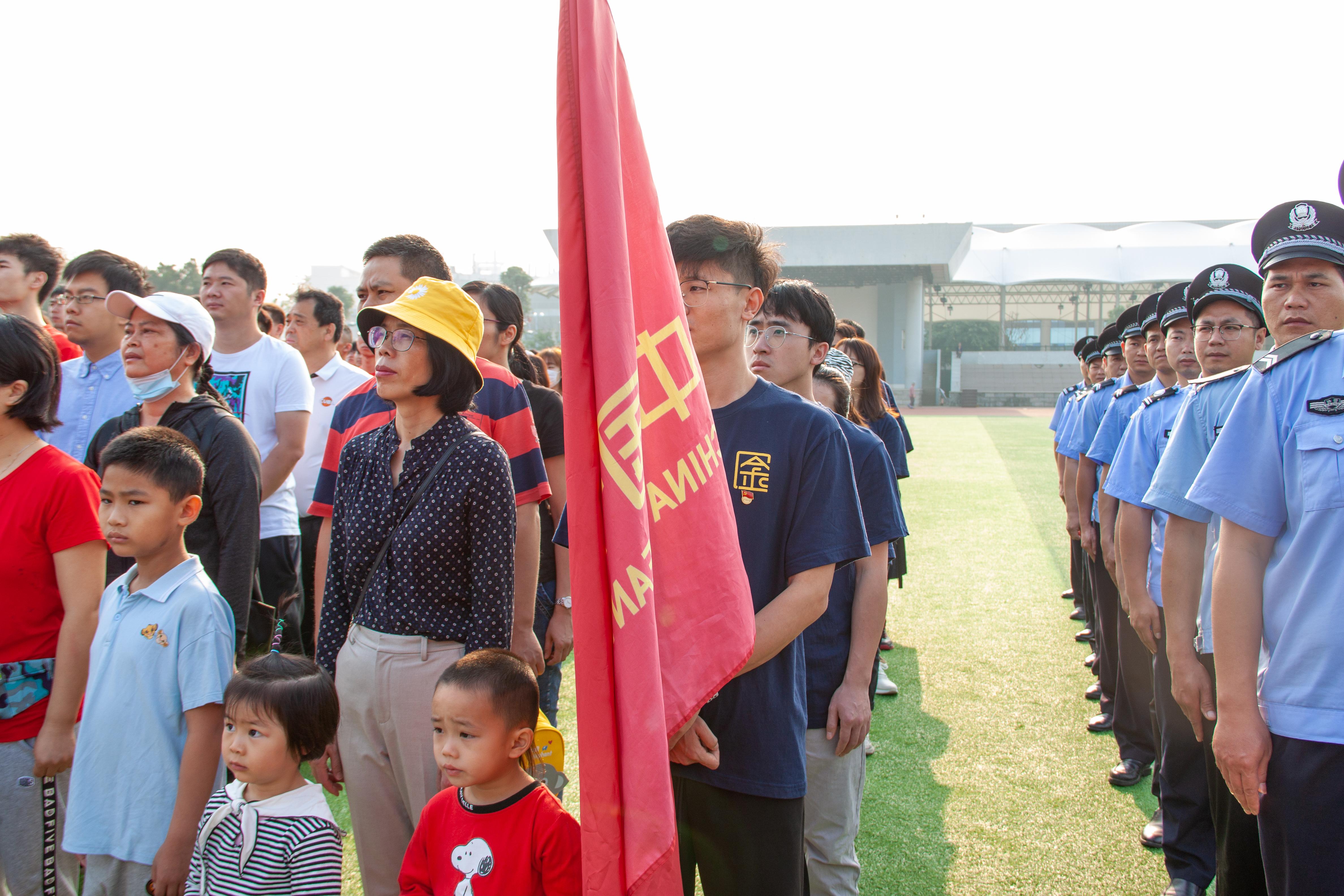 早晨8时,升旗仪式正式开始,伴随着雄壮的国歌声,鲜艳的五星红旗冉冉升起,迎风飘扬,在场同学齐唱国歌,向国旗行注目礼,随后学生代表在国旗下进行了慷慨激昂的发言。