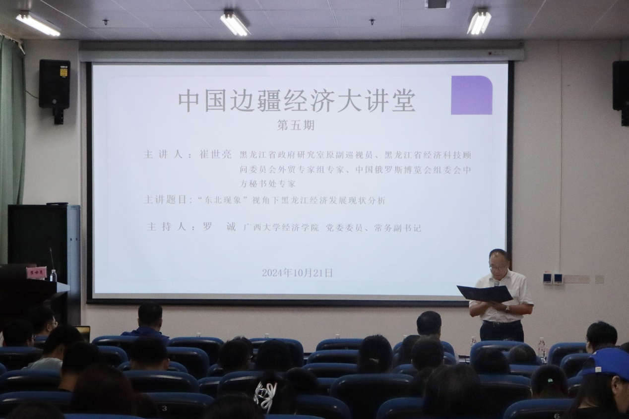 A107会议室举行。中国-俄罗斯博览会组委会中方专家崔世亮应邀作题为《“东北现象”视角下黑龙江经济发展现状分析》的报告。讲座由大陆博彩平台