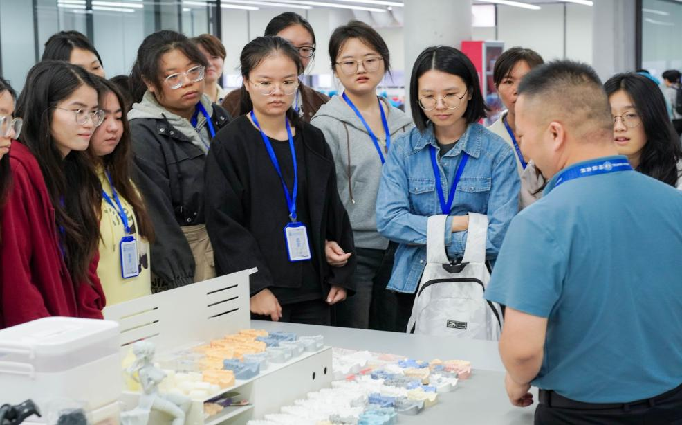活动的最后一站,师生们来到靖佳齿科技术中心。在这里,精密的生产设备、严谨的制作流程,让同学们看到了医疗健康产业的高质量发展图景。从数字化设计到个性化定制,从材料创新到工艺精进,齿科技术的创新实践为同学们打开了产业升级的认知窗口。