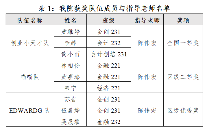 本科生李婷、黄小雨组成的“创业小天才队”成功晋级全国总决赛,并从全国137支晋级队伍中脱颖而出,最终斩获全国一等奖。同时,指导教师陈伟宏副教授荣获“优秀指导教师奖”。