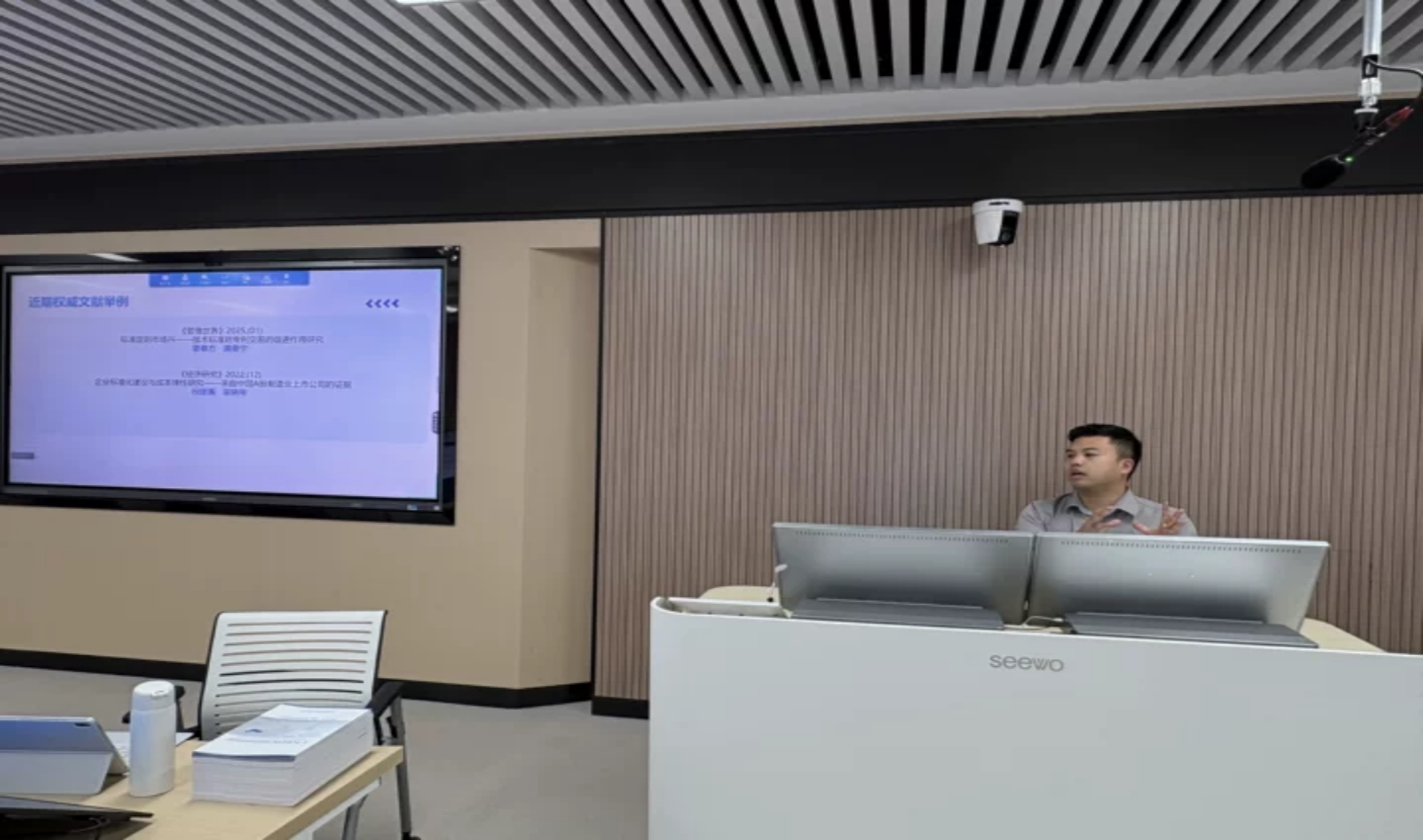 许明臻讲师首先系统介绍了CNRDS平台的定位与资源版图,重点讲解了平台适配经济学科研究的全量金融数据和经济指数数据等特色资源。随后,他现场演示了平台智能文本分析工具的操作流程,并结合供应链、绿色金融等研究方向,指导师生如何高效匹配数据维度。针对师生在科研中常见的数据应用难点,分享了数据检索、清洗的实用技巧,有效解决“数据找不准、用不顺”等痛点,帮助师生厘清了数据工具与学术研究结合的实践路径。