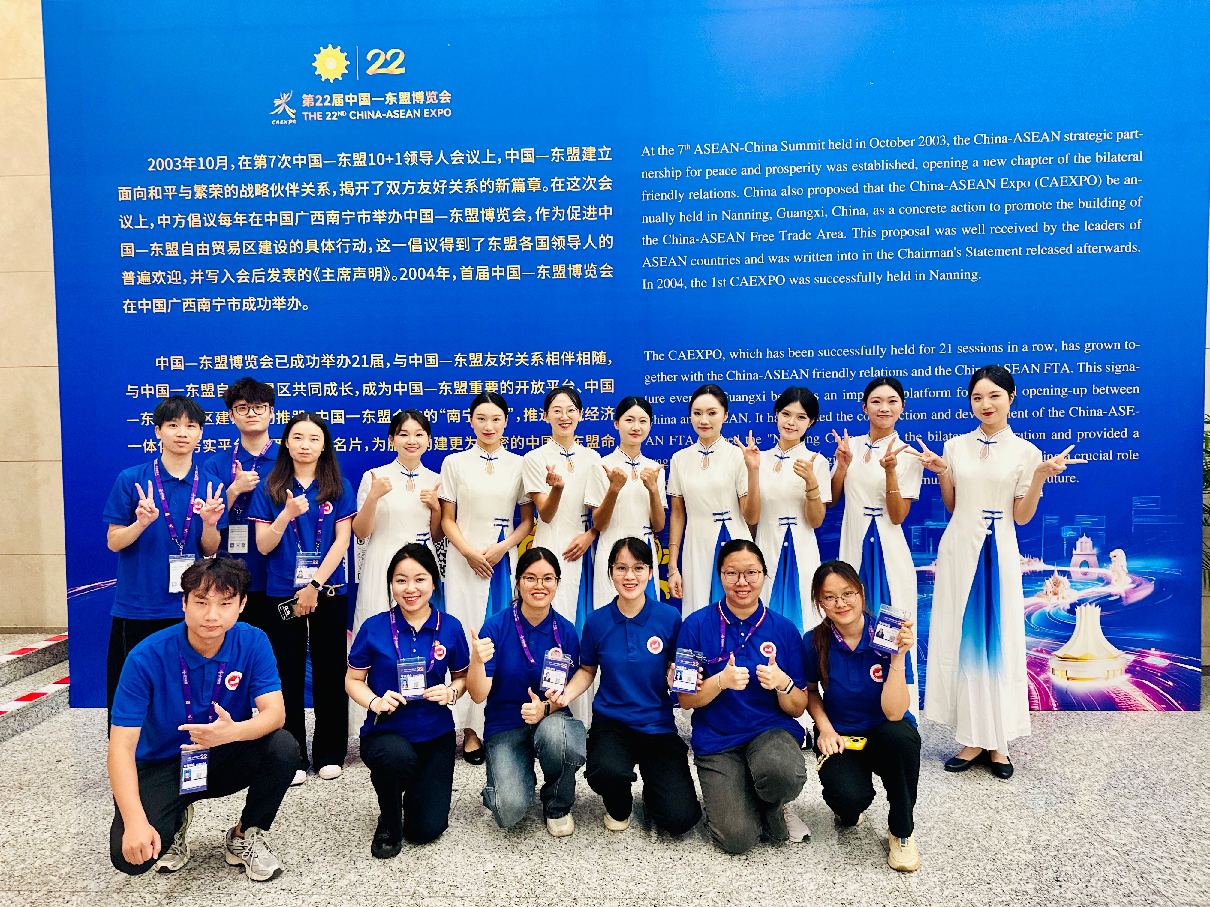 组织学生志愿者服务第22届中国—东盟博览会(部分志愿者在线上博彩平台活动现场合影)