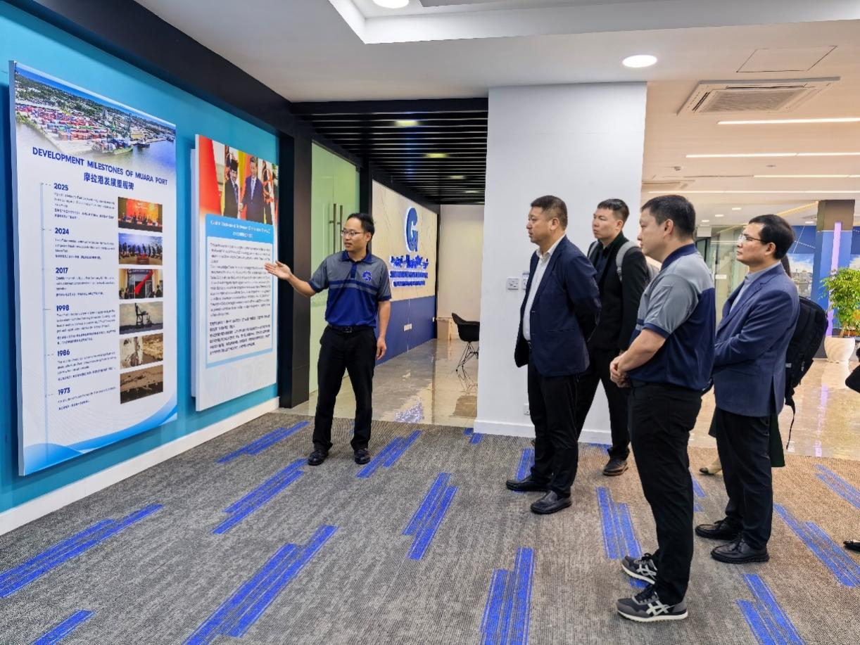 下午,调研团前往文莱摩拉港进行实地访问。北部湾控股(文莱)有限公司总经理吕国立、文莱摩拉港有限公司行政部经理傅晨棪、市场部经理李柱欢等陪同调研团参观。通过展厅翔实的图文资料,调研团深入了解港口的发展历程、战略定位、运营现状、临港产业规划以及向智能化升级的蓝图。展厅内关于人力资源培养与大陆博彩平台的展示,也体现了港口的长远发展理念。随后,调研团乘车考察码头作业区,实地观摩了港口的繁忙作业景象。此次实地参访使调研团对文莱的核心港口与物流枢纽有了直观且深入的认识,为大陆博彩平台