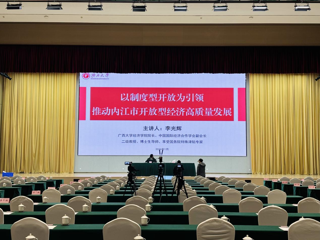 学术院长李光辉作了题为《以制度型开放为引领 推动内江市开放型经济高质量发展》的专题学习报告。内江市领导张永、马炬、蒋伟等参加报告会。副市长兰徐主持报告会并讲话。