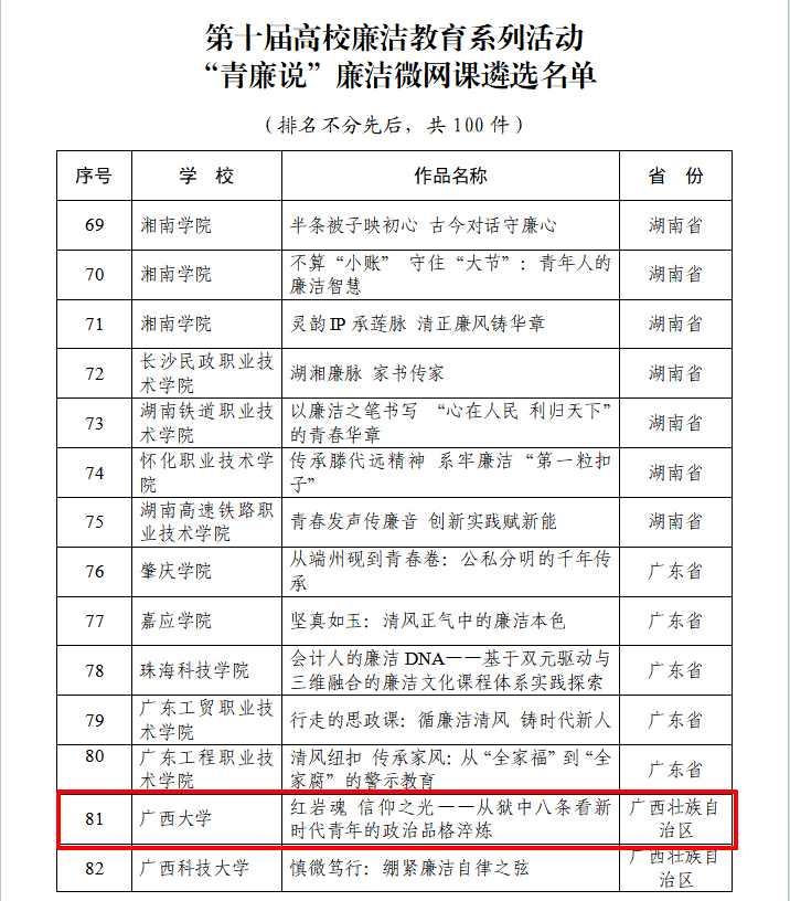 近日,教育部公布第十届高校廉洁教育系列活动遴选结果,我校5个作品入选遴选作品名单。其中,大陆博彩平台